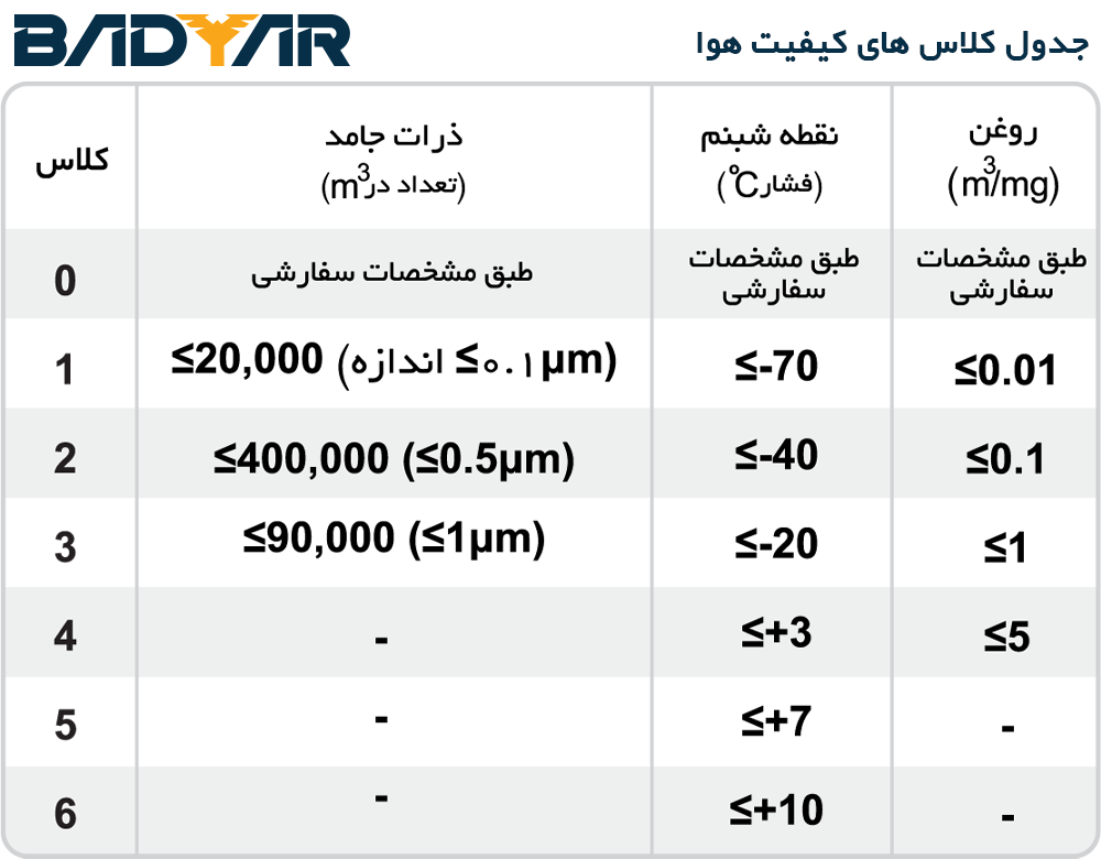 کلاسهای کیفیت هوای فشرده بر اساس استاندارد ISO 8573-1:2010