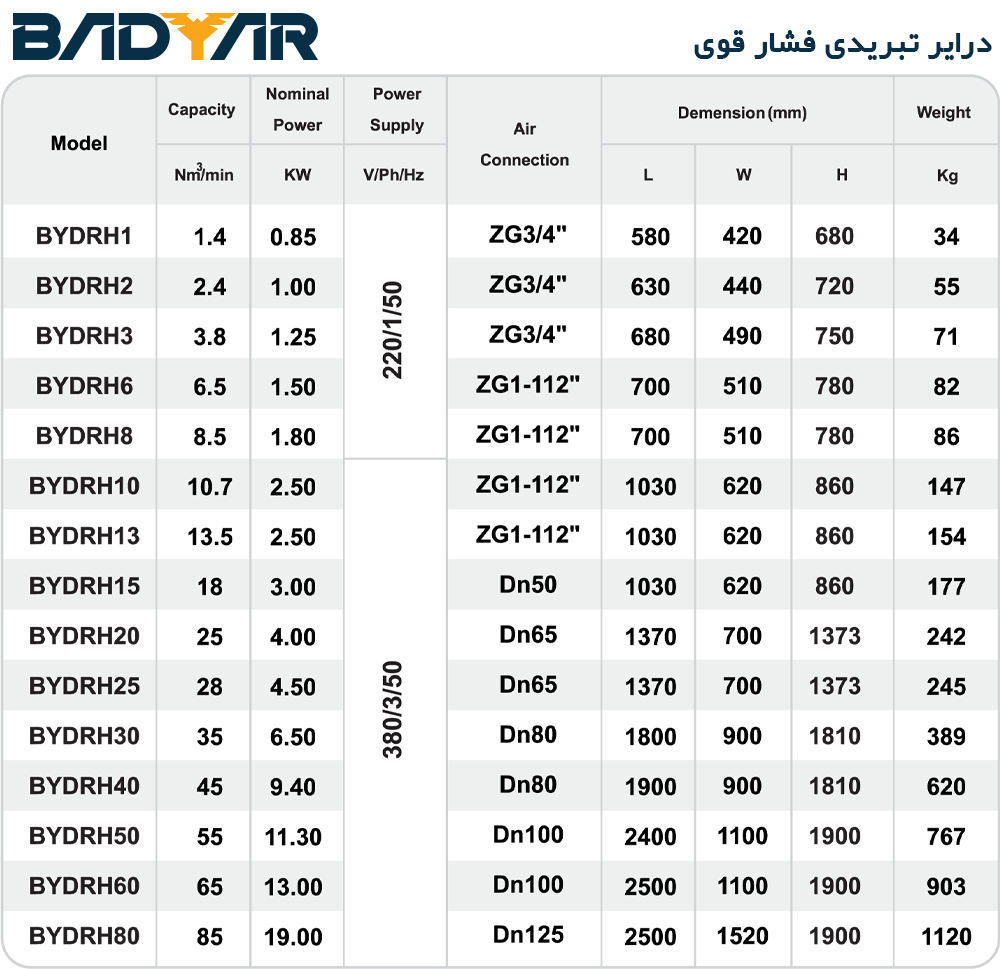 ۳۸۰ ولت : سهفاز / ۵۰ یا ۶۰ هرتز (مدلهای ۲۰۰ تا ۸۰۰ اسب بخار)