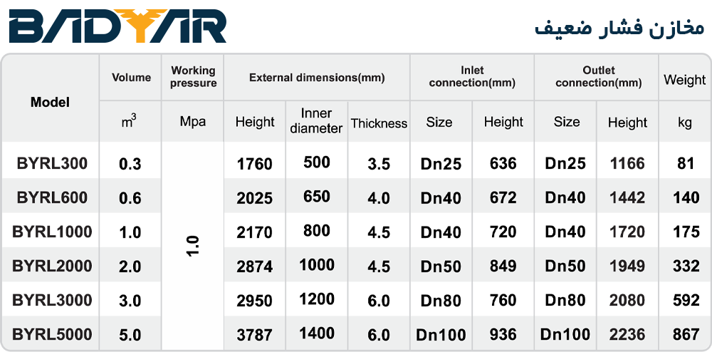 با مخازن هوای شرکت بادیار از نظر فنی ، همیشه در وضعیت مطمئن قرار دارید؛ زیرا ما کل سیستم را در نظر میگیریم، بر نصب آسان و هماهنگی کامل با سایر اجزا تمرکز داریم و مجموعهای جامع از لوازم جانبی ارائه میدهیم.