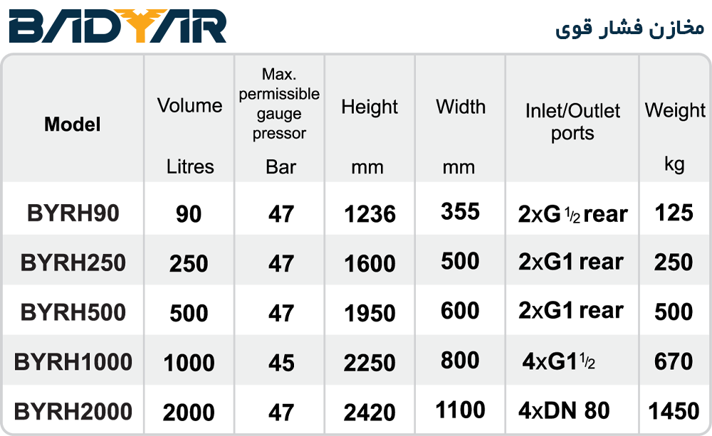 مخازن هوای عمودی یا افقی ، تا فشار ۵۰ بار