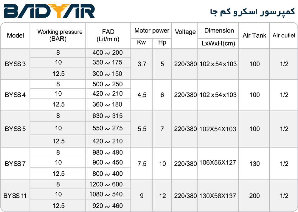 کمپرسور اسکرو تکفاز و سه فاز بادیار – هوای فشرده با مصرف خانگی، عملکرد صنعتی